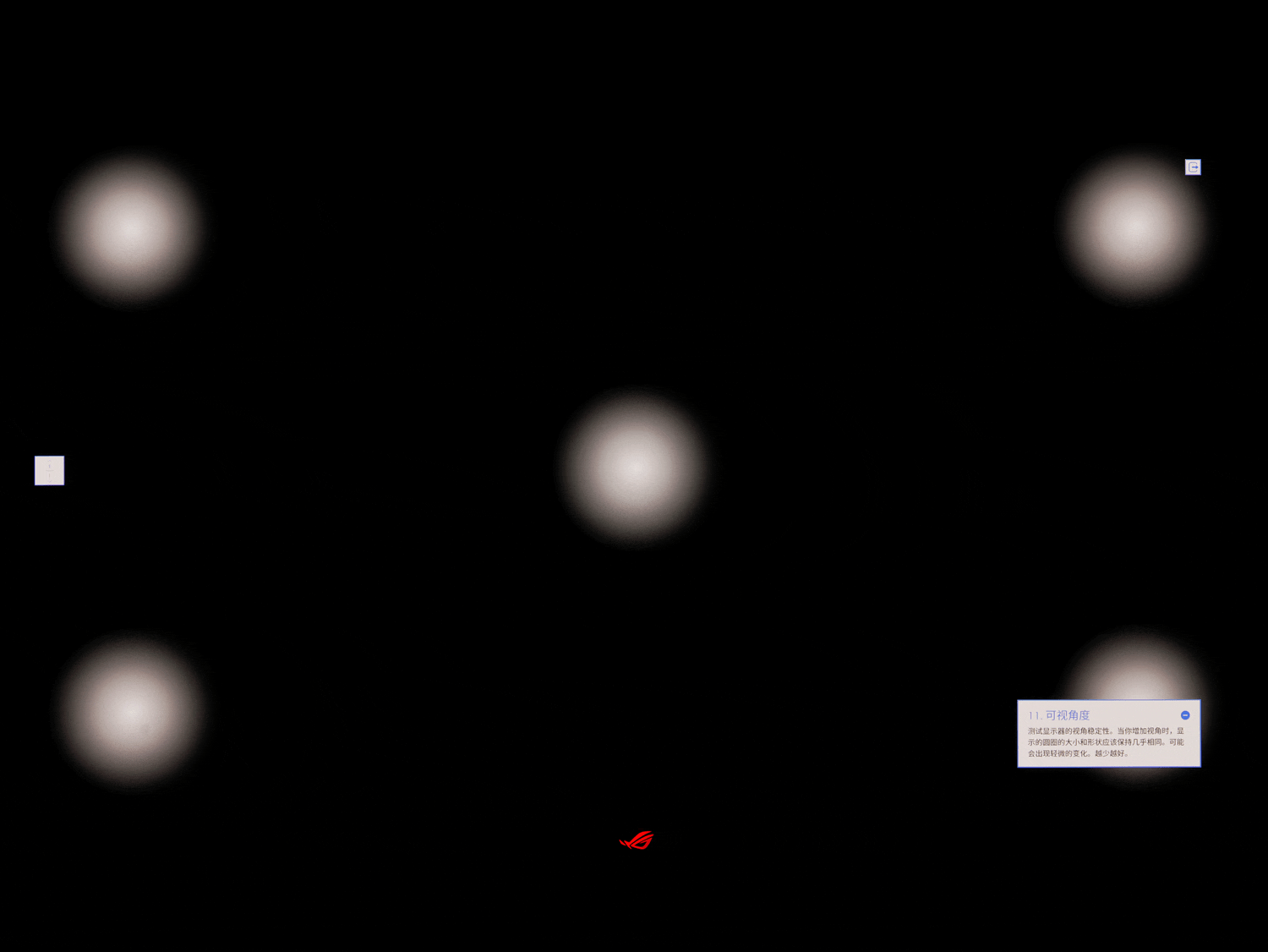 在可视角度方面,ROG超神X OLED达到水平/垂直均为178°,完全不存在LCD屏幕常见的死亡视角。看图说话,图一随角度变化时光球大小几乎没有变化,仅有轻微的亮度损耗;图二更是除了视线角度的变化,色彩表现与画面观感基本大差不差。