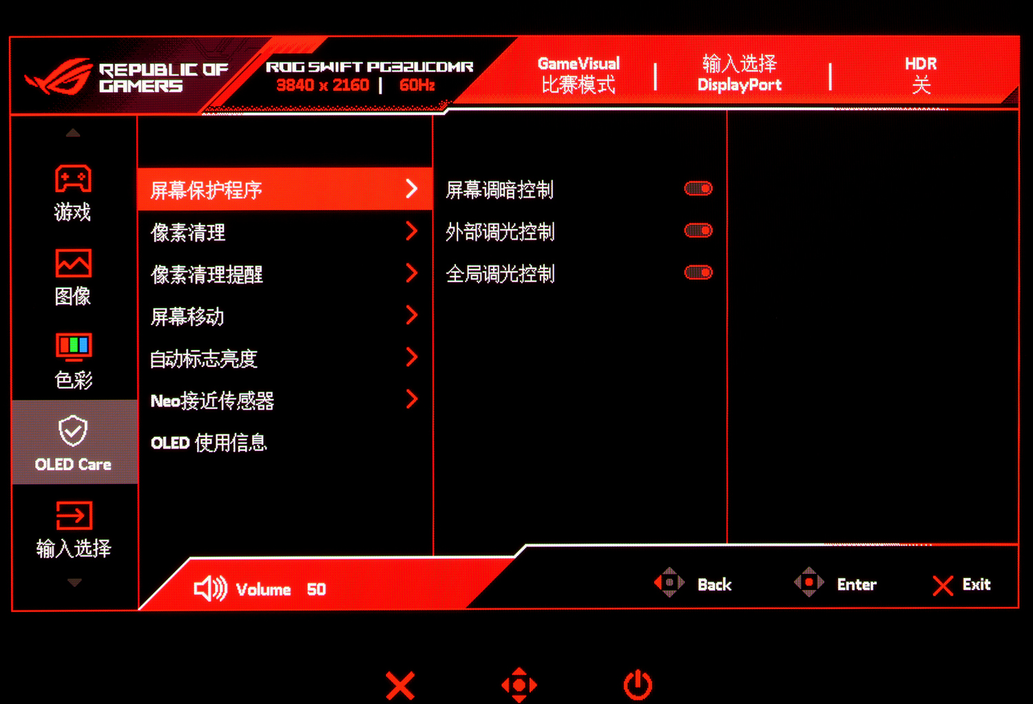 ROG超神X OLED的Neo接近传感器也很有意思,它可以精确的检测玩家与显示器的距离(感应距离可定制),按需设定时间5/10/15分钟后,玩家离开座位,显示器会自动切换到全黑画面以防止烧屏,待玩家回到座位后,又立即恢复显示,这样人机交互,让屏幕更主动更智能更易用。