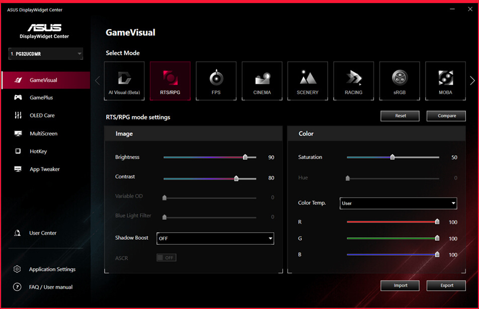 咳咳,如果不满意AI Visual选择的模式,还可以通过App Tweaker进行应用级模式适配,比如给常规游戏指定RTS/RPG模式,给浏览器指定sRGB模式,给视频播放器指定影院模式,难道是传说中的私人定制?