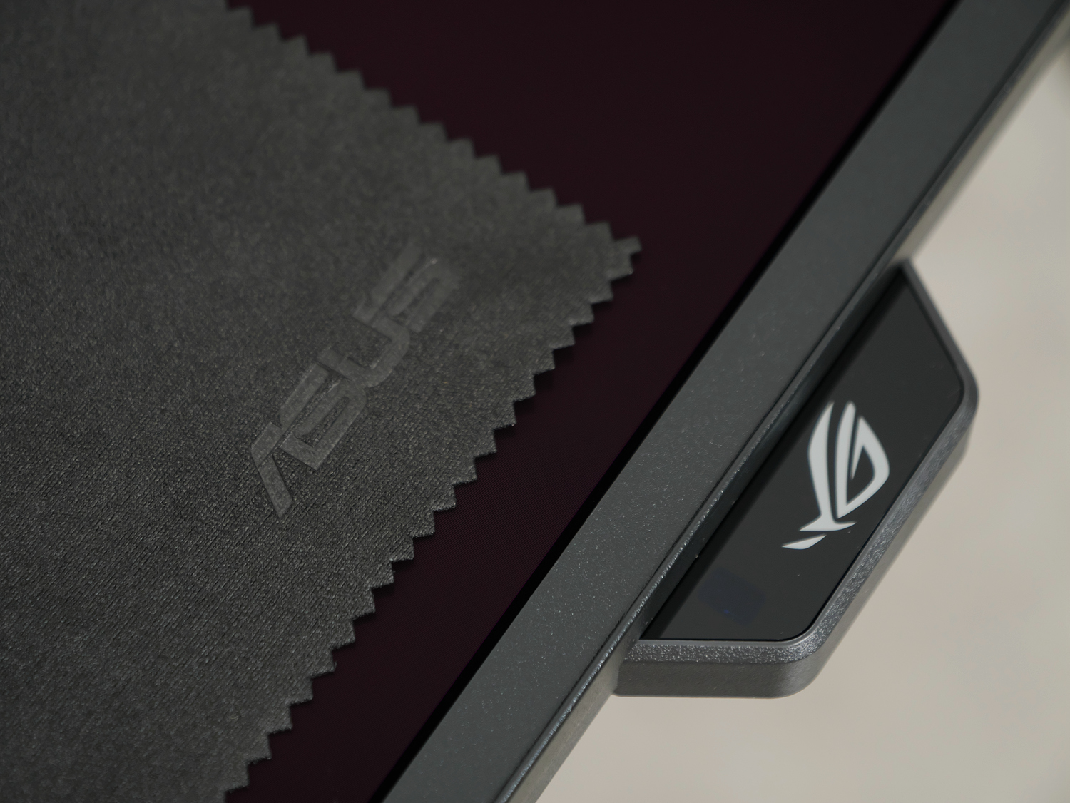 出厂配件满满当当,满血DP线+高速HDMI线+type-C线+USB线+清洁布+信仰贴纸,还是熟悉的赛博朋克定制美学,代表ROG玩家至上的态度。