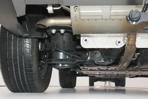 “陆”:这是G700的传统强项。非承载式车身结构为其提供了坚固可靠的基础,抗扭刚度表现出色。全系标配的前、中、后三把电控差速锁锁止响应时间极短,仅需0.1秒内即可完成锁定动作,配合智能全地形模式和2挡低速四驱功能,共提供7种驾驶模式供选择。在泥地、雪地、岩石、交叉轴等极端路况下,即便只有一个车轮具备附着力,车辆也有机会成功脱困。空气悬架与CDC可调阻尼减振器的协同工作,使车身高度可在150毫米至350毫米之间灵活调节,离地间隙至大可达350毫米,接近角为35度,离去角为28度,攀爬45度陡坡或穿越炮弹坑均不在话下。