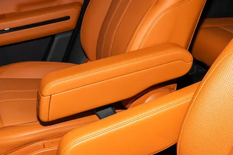 “尊”与“享”:体现了G700豪华舒适的一面,旨在打破人们对传统越野车粗糙简陋的印象。车内采用Nappa真皮包裹的云感座椅,支持8点按摩、3档通风和加热功能;六座版的第二排独立座椅可实现135度电动调节并带有腿托;搭配劳斯莱斯同品牌的莱斯康音响系统(18个扬声器)和64色智能氛围灯营造沉浸式听觉视觉盛宴;7.1.4声道哈曼音响系统峰值功率达1500瓦带来震撼音效体验;AQS空气质量监测加双层流空调保证车内空气清新宜人且不易起雾;车载智能冷暖箱温度可在零下6度到50度之间自由调节满足多样化饮食需求。