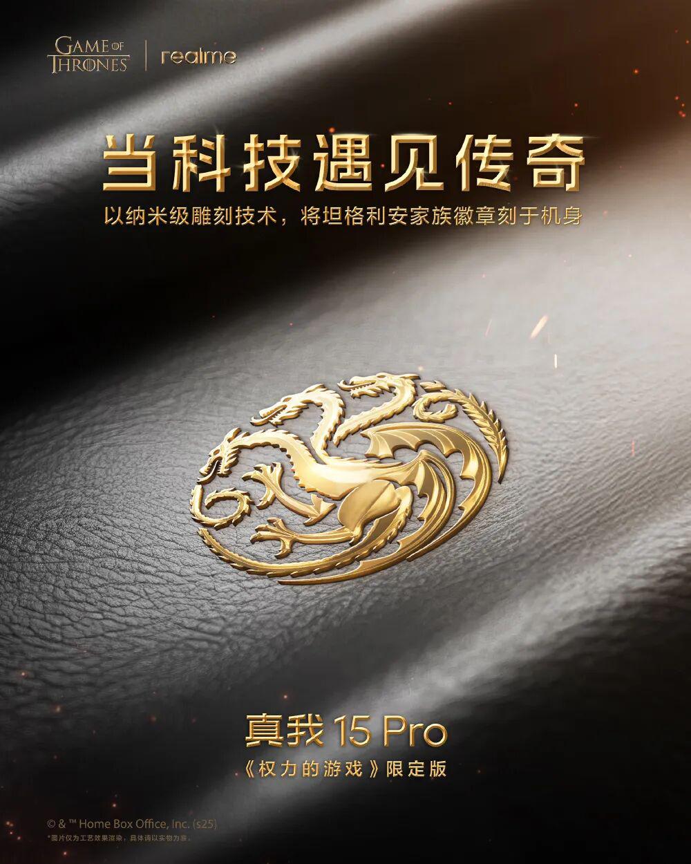纳米级鎏金雕刻技术,国行真我15 Pro《权力的游戏》限定版官宣
