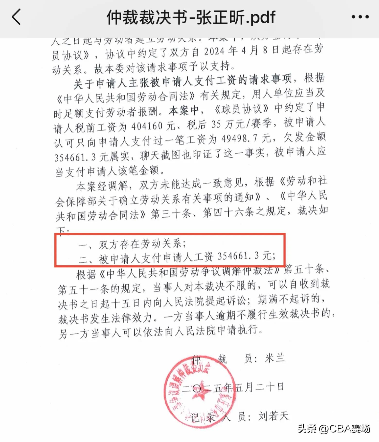 前八一青训球员、CBA选秀出身的史文龙,2024年与石家庄翔蓝签约,约定税前40.4万薪金分10个月发放,仅领到两月工资后便被停发。他与宋帅、张正昕、王浩宇多次讨薪无果,只得申请劳动仲裁。仲裁委最终裁定双方存在劳动关系,俱乐部需支付四人欠薪共计超136万元。