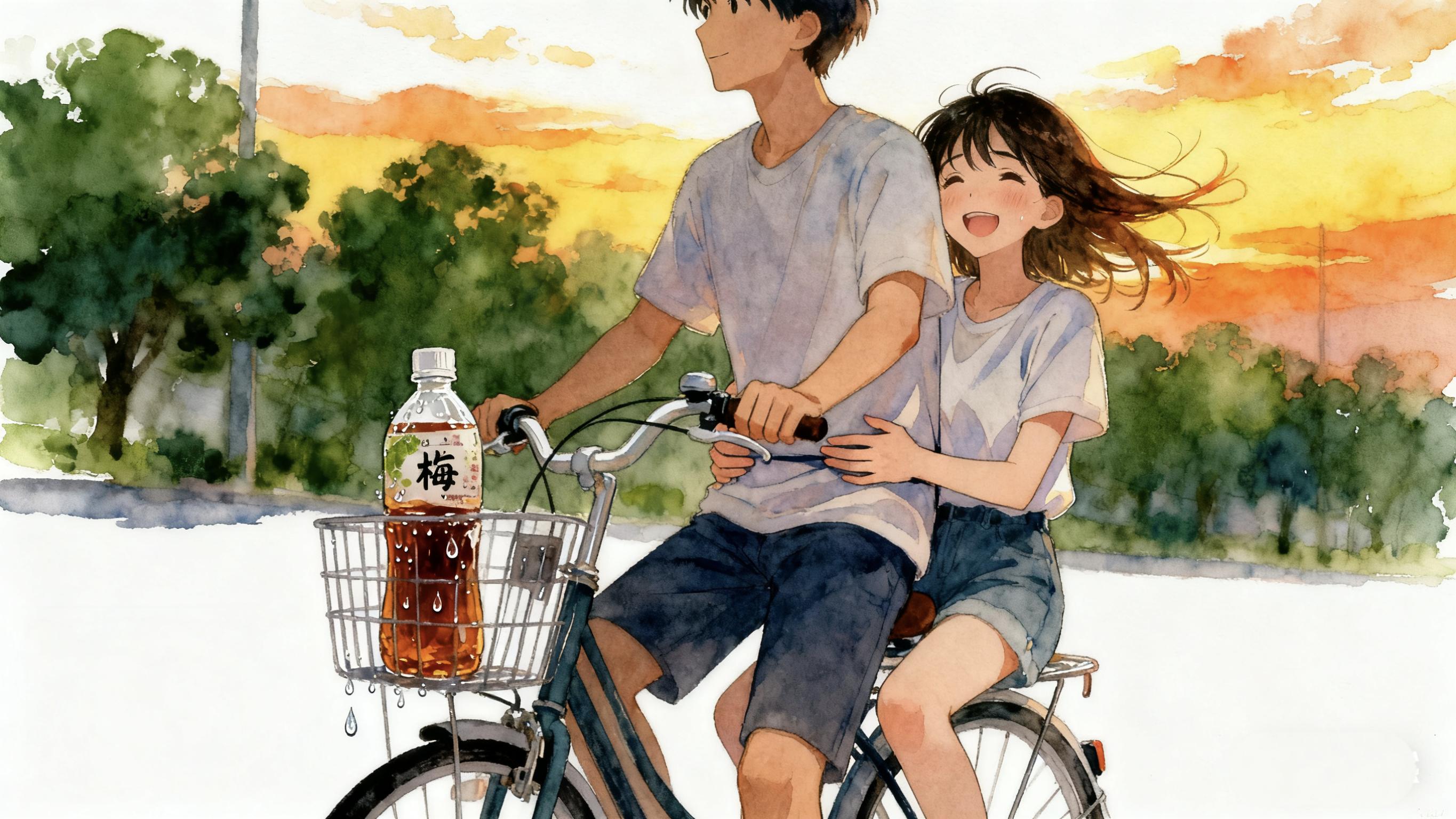 “我以为爱情就该是那样——他骑着单车带我穿过夏天的晚风,车筐里还放着我最爱的冰镇酸梅汤。”
