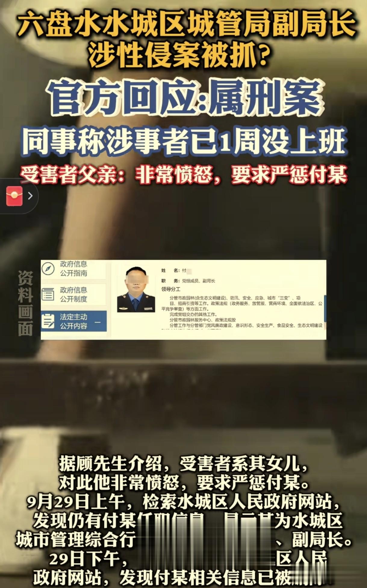 但不管怎样,法律是公正的,目前,水城区人民政府网站,付某的信息已被删除。