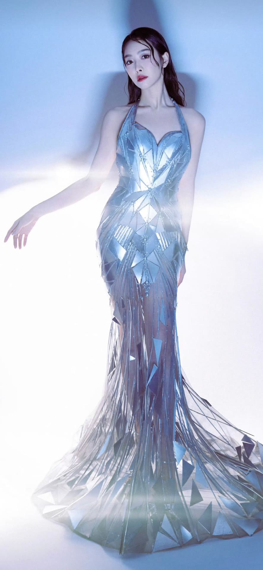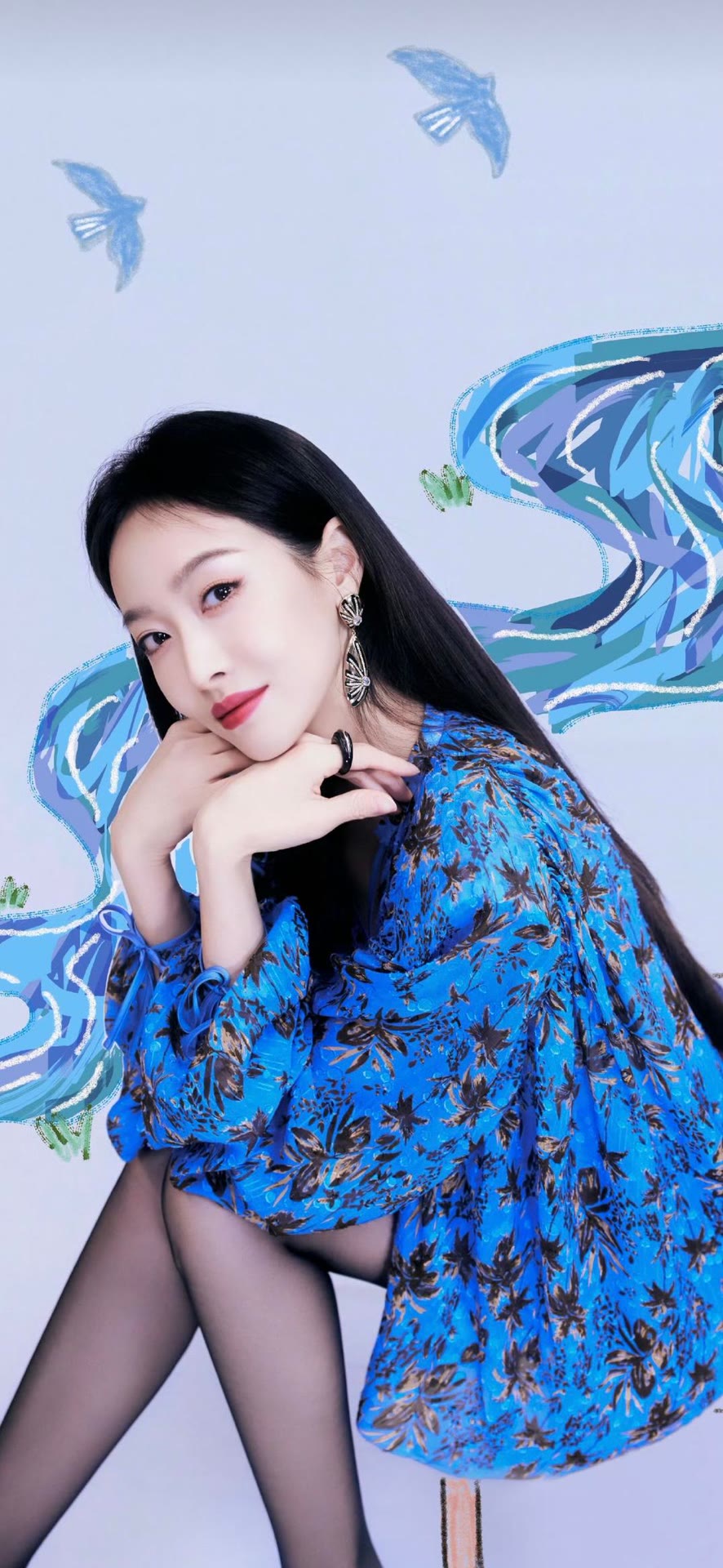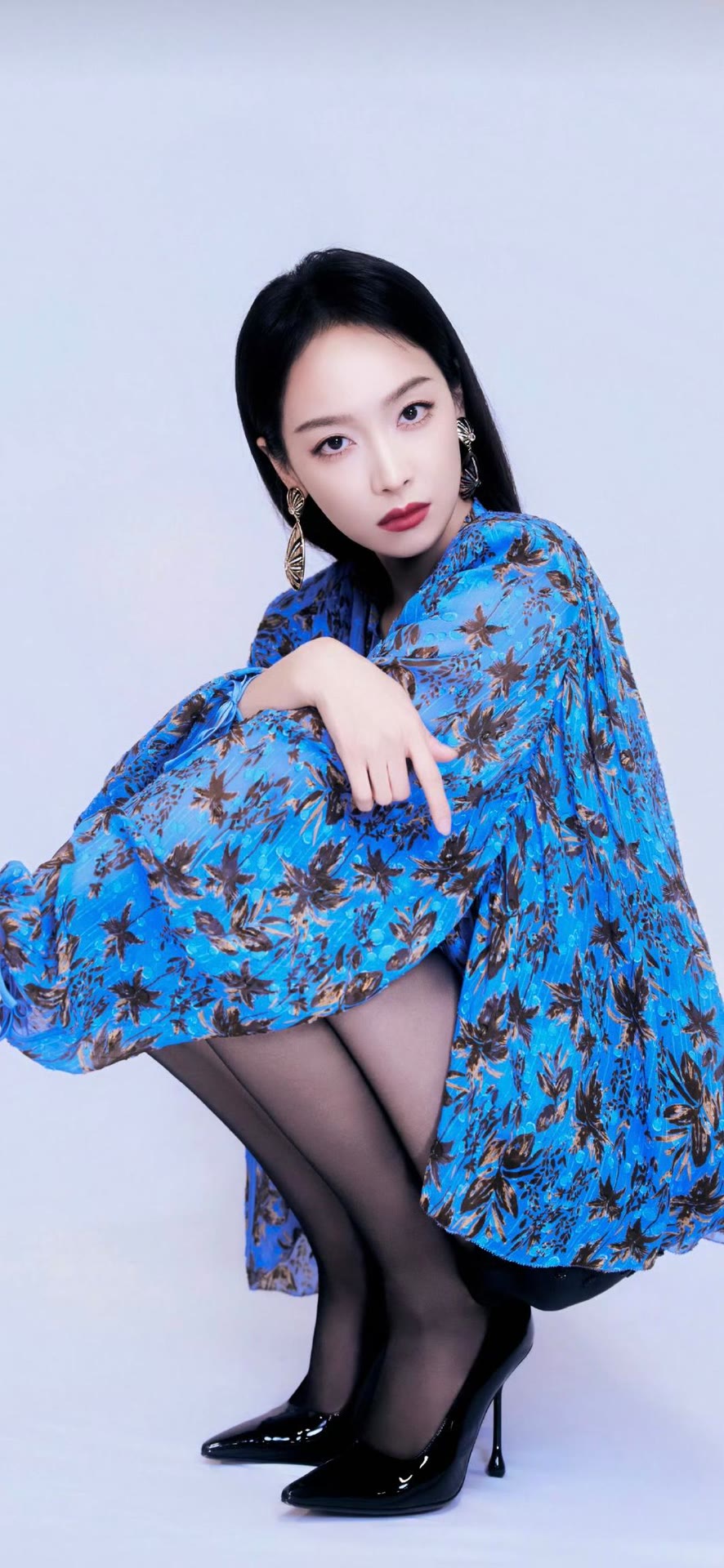宋茜蓝花衫配黑丝,甜酷少女感太绝了