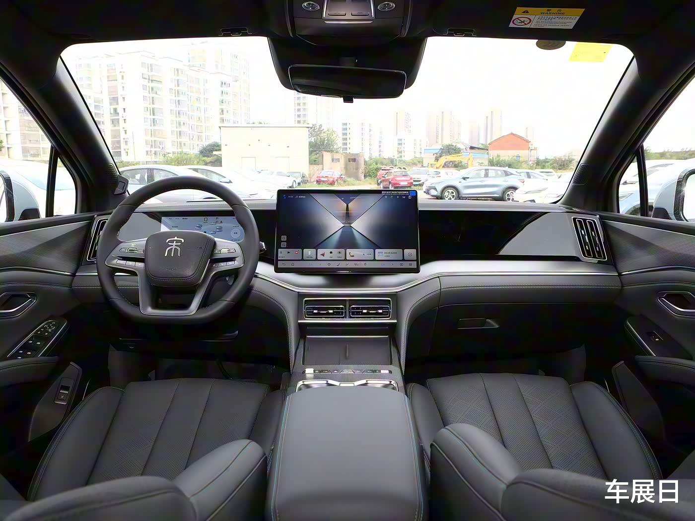 配置上,8.8英寸液晶仪表 + 12.8/15.6英寸大屏,内置比亚迪DiLink 100智慧车机;全新怀挡设计,副仪表台空调出风口下方有50W手机无线充电面板,保留部分高频功能物理按键;智能座舱具备无麦K歌、游戏中心等娱乐功能,手车互联功能多样,有智能防晕车等功能。