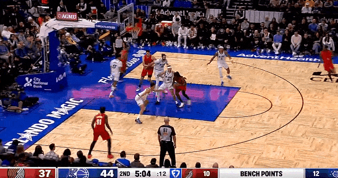NBA常规赛,开拓者对阵魔术的比赛正在进行中。