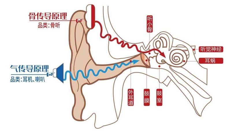 另一种是骨传导耳机,通过骨头的振动来传递声音,声音直接传至听觉区域,同样不需要堵塞耳道。