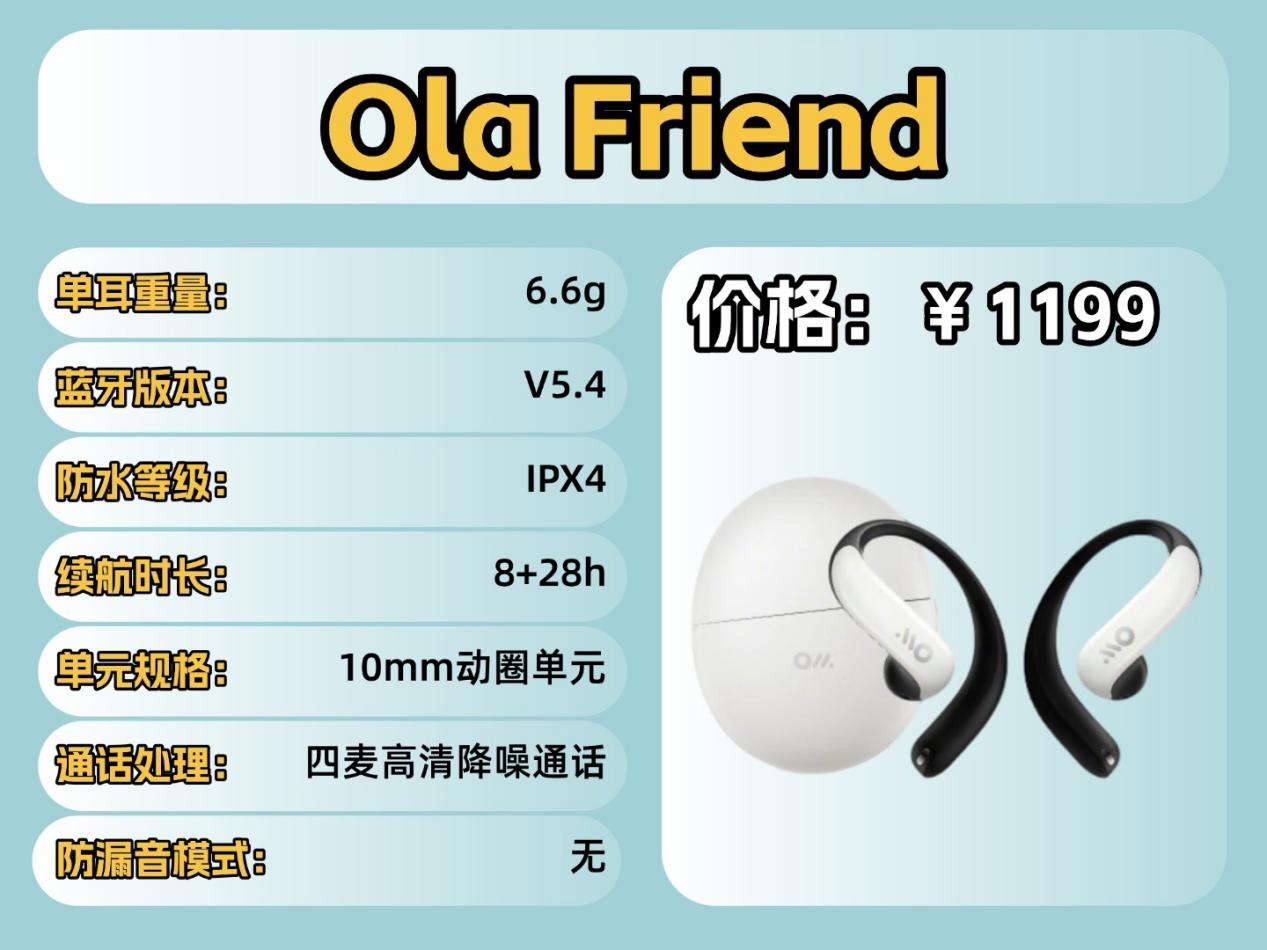 Ola Friend价格:1199 元推荐程度:★★★★推荐理由:佩戴舒适度很好,重量很轻,整体表现不错!