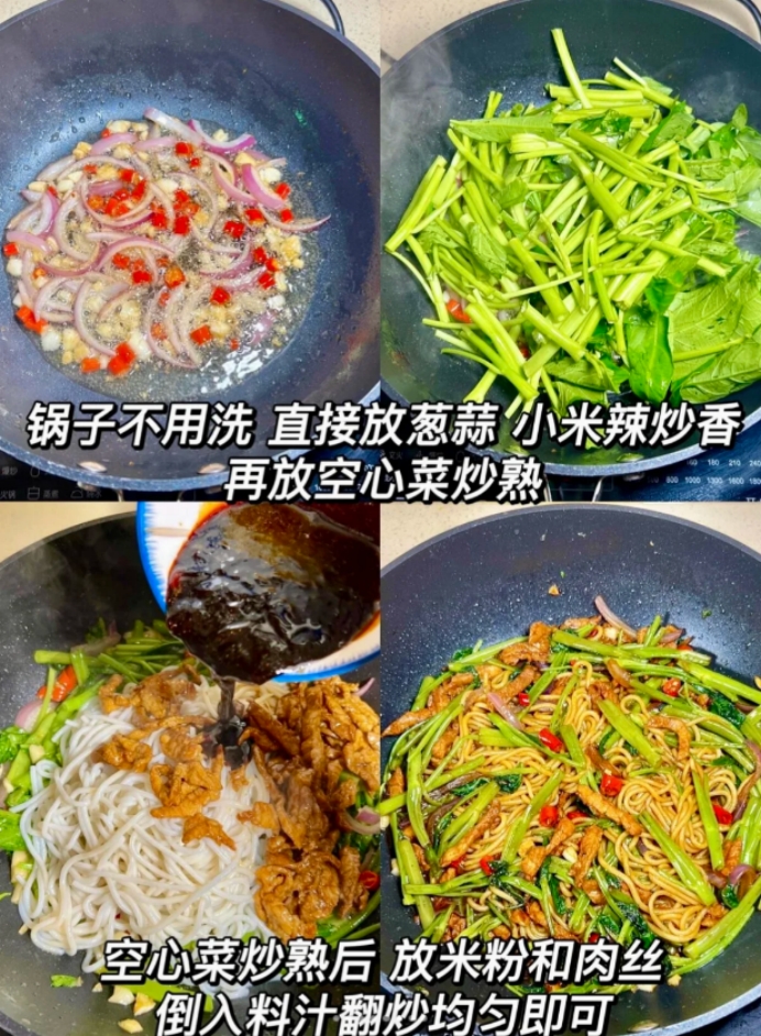 其实,真正的家常幸福,往往就藏在一盘热气腾腾的炒粉里。它没有山珍海味,却用最朴实的食材,炒出了最熨帖人心的烟火气。下次冰箱剩一把空心菜、橱柜有包米粉时,别犹豫——十分钟,就能炒出一盘锅气十足、香气扑鼻的家常美味。毕竟,好好吃饭,才是对生活最温柔的热爱呀!