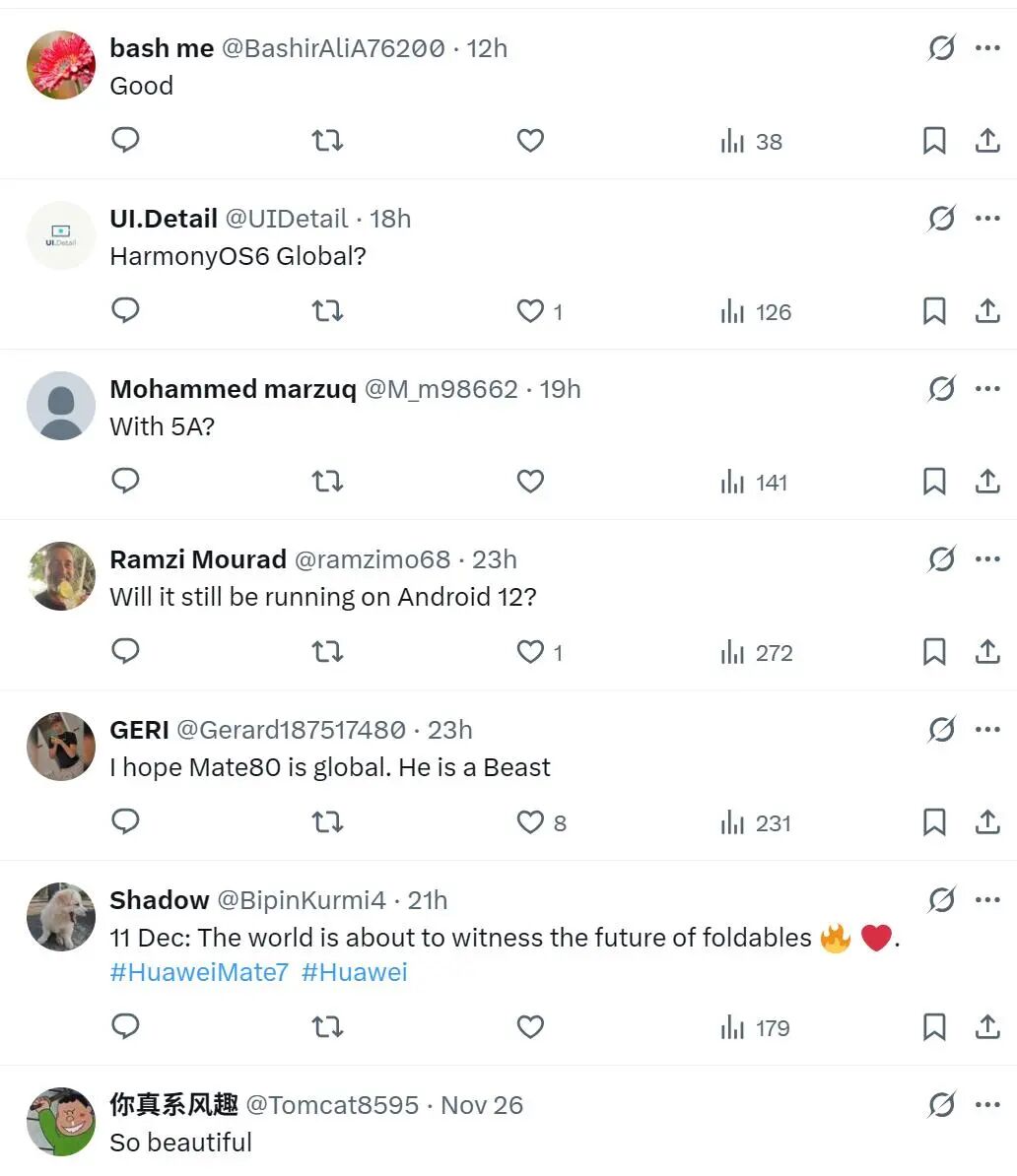 “希望早日用上HarmonyOS 6全球版!”“期待Mate 80系列也能出海!”“华为请别放弃海外市场!”