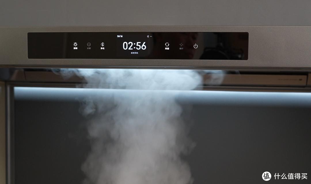 另外还可以实现挥手操控,无需接触按键的情况下通过手势就能够实现对烟机的控制。在手上有水有油的时候,就不用去按触摸按键了,防止按脏按键。