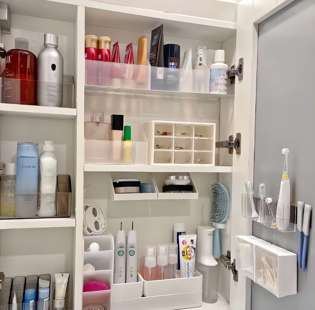 平时你放在台面上的洗漱物品、化妆品等等,你都可以放入到镜柜里面,让台面空间空无一物,看着都很整洁。