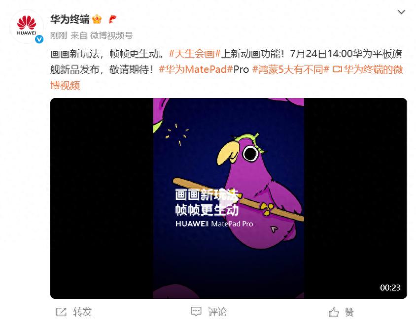 7月22日,华为终端官方社交媒体账号发布了一则创意十足的动画演绎视频,正式揭晓其自研专业绘画软件——天生会画App将迎来一项重大功能更新——动画功能。视频中所展示的强大动画创作能力,迅速引发了数字创作领域的广泛关注。这不仅软件自身的一次突破,也为即将在7月24日14:00发布的华为平板旗舰新品——华为MatePad Pro 12.2 英寸,做出了最具想象力的预告。