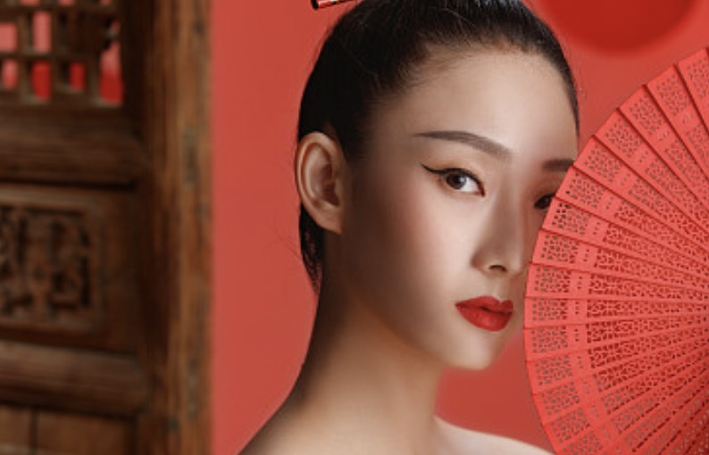 女孩一双眼睛圆润,氤阖着水汽。脸上细细扑了一层粉,柳眉弯弯,饱满水润的嘴唇淡淡上了一层口脂。