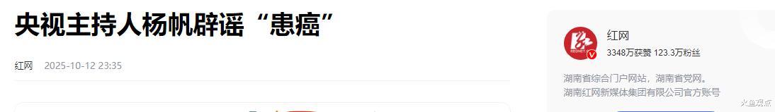 【2】红网2025-10-12《央视主持人杨帆辟谣“患癌”》