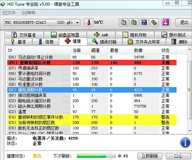第二件:用个小工具,看看硬盘还能活几天下个免费软件叫“CrystalDiskInfo”(网上一搜就能找到),打开后看“重新分配扇区计数”那一行。如果这数字一直在涨,比如今天显示10,过两天变成15,那就跟医生说你“血压天天往上飙”一个道理——硬盘正在快速恶化,赶紧停了它别用了!这时候别信什么“重启试试”“杀毒看看”,没用!