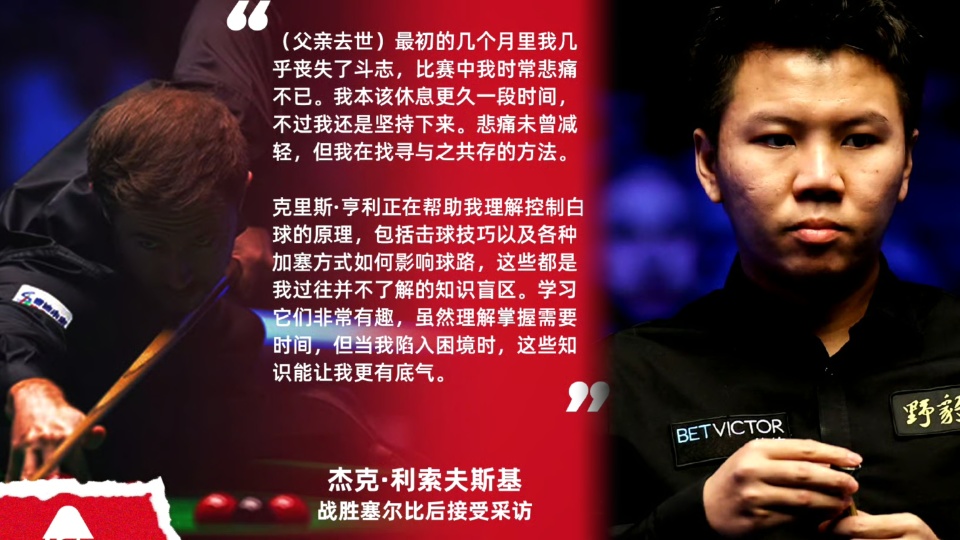 对于周跃龙来说,这一次半决赛想要拿下小司机难度不小,自从揭开上赛季低迷真相之后(三月份父亲因病去世),以父之名参赛的他犹如出笼的猛兽,这次系列赛已经先后淘汰了多位世锦赛冠军,其实小编非常希望本站赛事他能够拿下生涯首冠,用奖杯去慰藉自己对于父亲的思念,不过小特依然会是X因素。