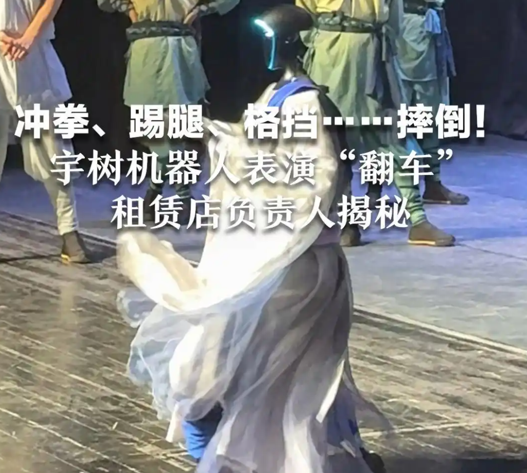 网友调侃“人工智能也逃不过穿长款衣服的宿命”,不过话说回来,一天「七八千的租赁费」,摔一跤也算给表演加了「“真人感”buff」,毕竟人类武打明星也有NG时刻嘛,机器人这波属于「沉浸式演出」了。