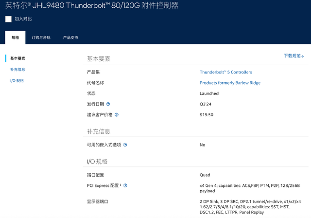 拆机:大厂芯片方案主控芯片部分,零刻 Mate SE 使用了1颗来自英特尔的 JHL9480,这颗芯片代号为 Barlow Ridge,是一颗支持 80G/120G 的雷电5控制器(兼容 USB4 v2)。