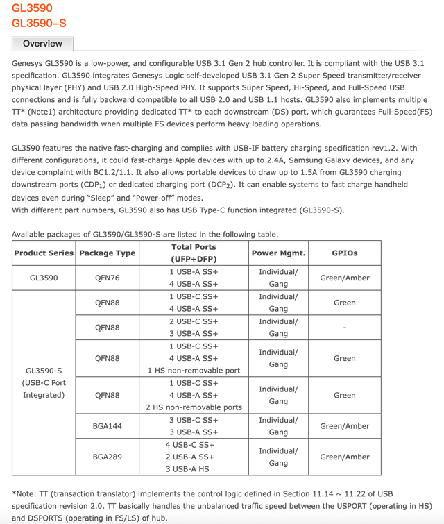USB Hub 控制芯片来自创惟科技(Genesys Logic),型号为 GL3590。