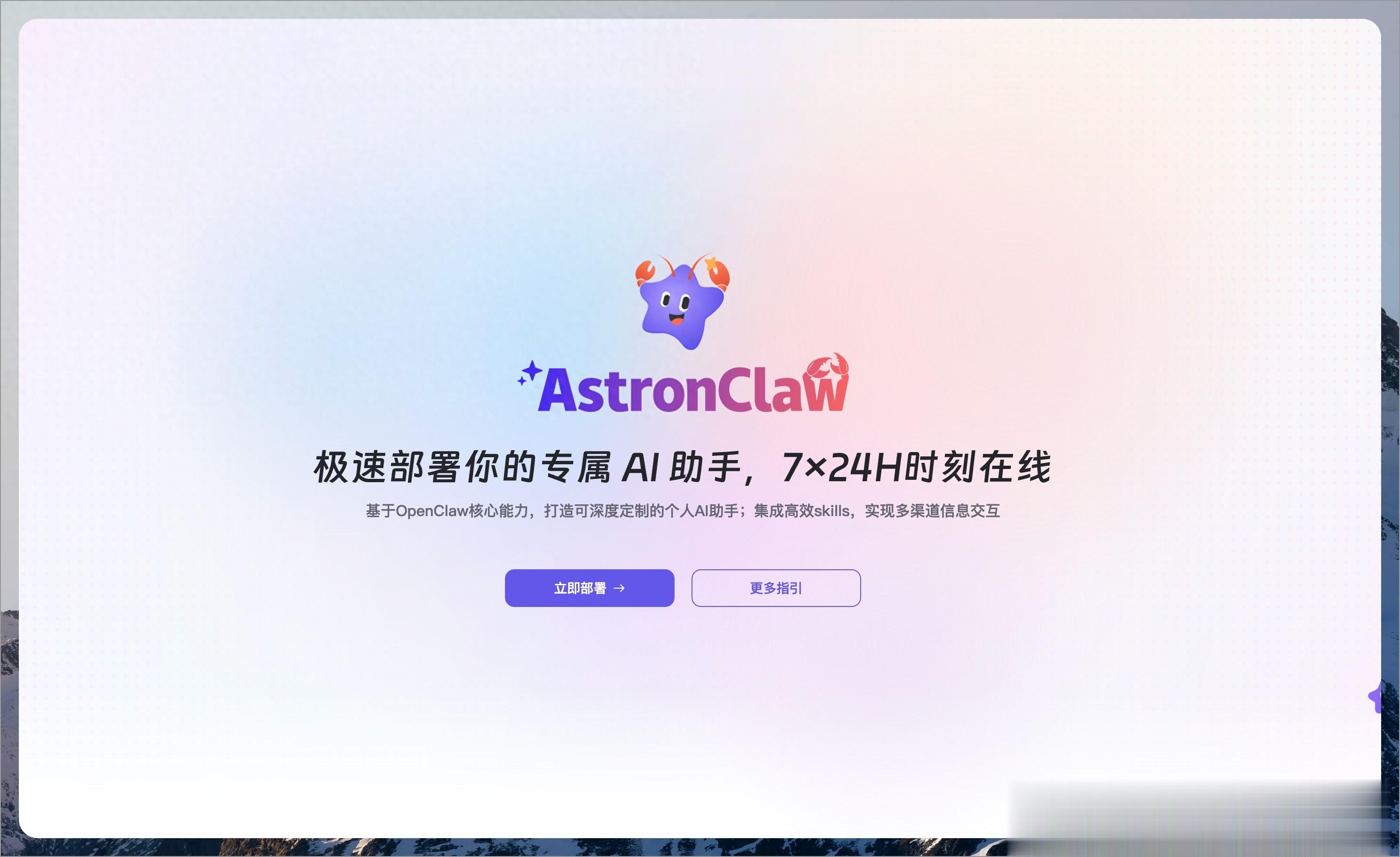 核心功能1.零门槛云端部署,一键完成无需写代码、配置环境或保持电脑开机,只需要在网页点击部署即可完成。