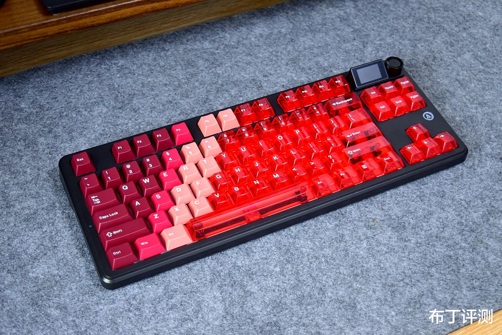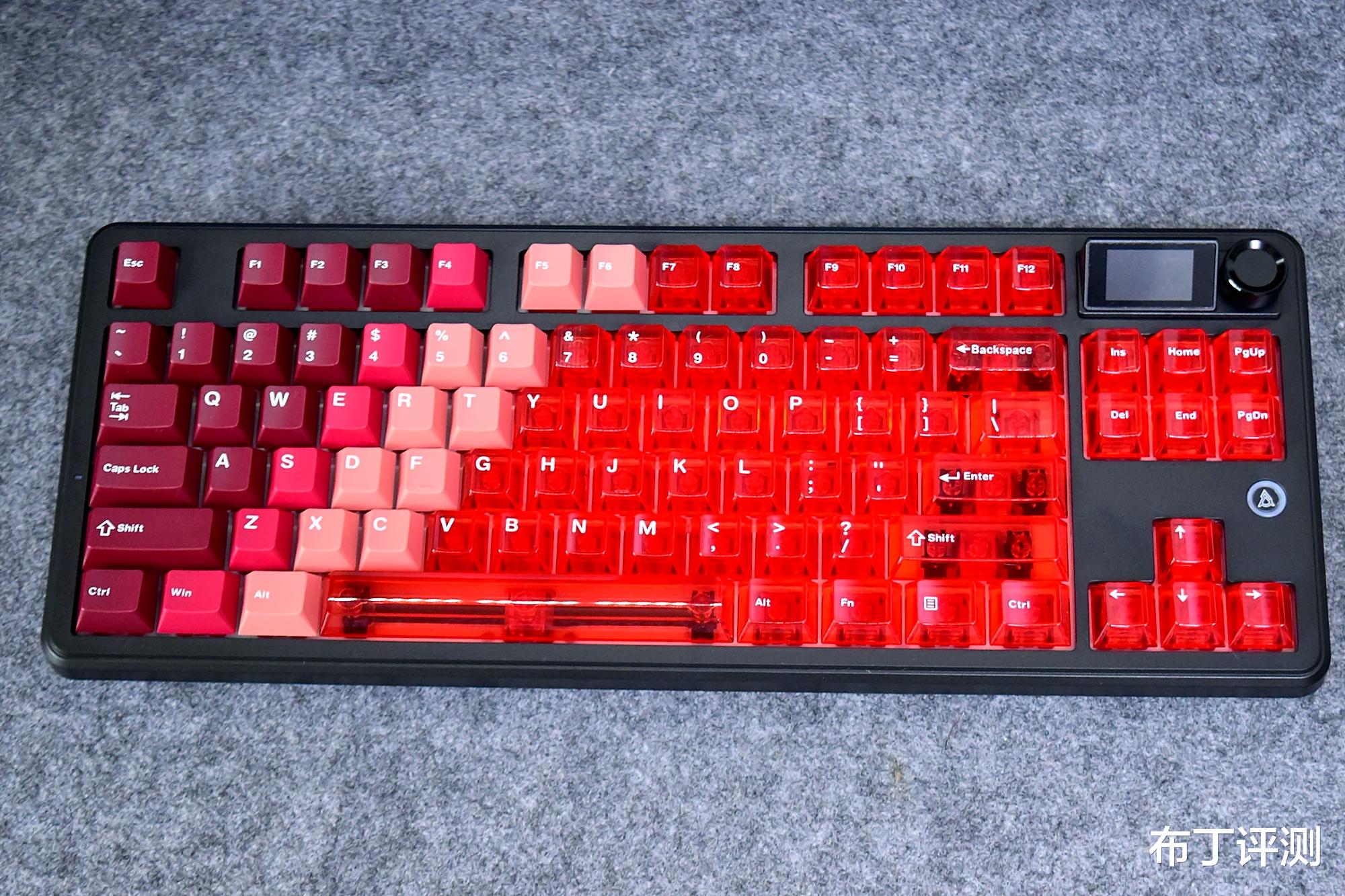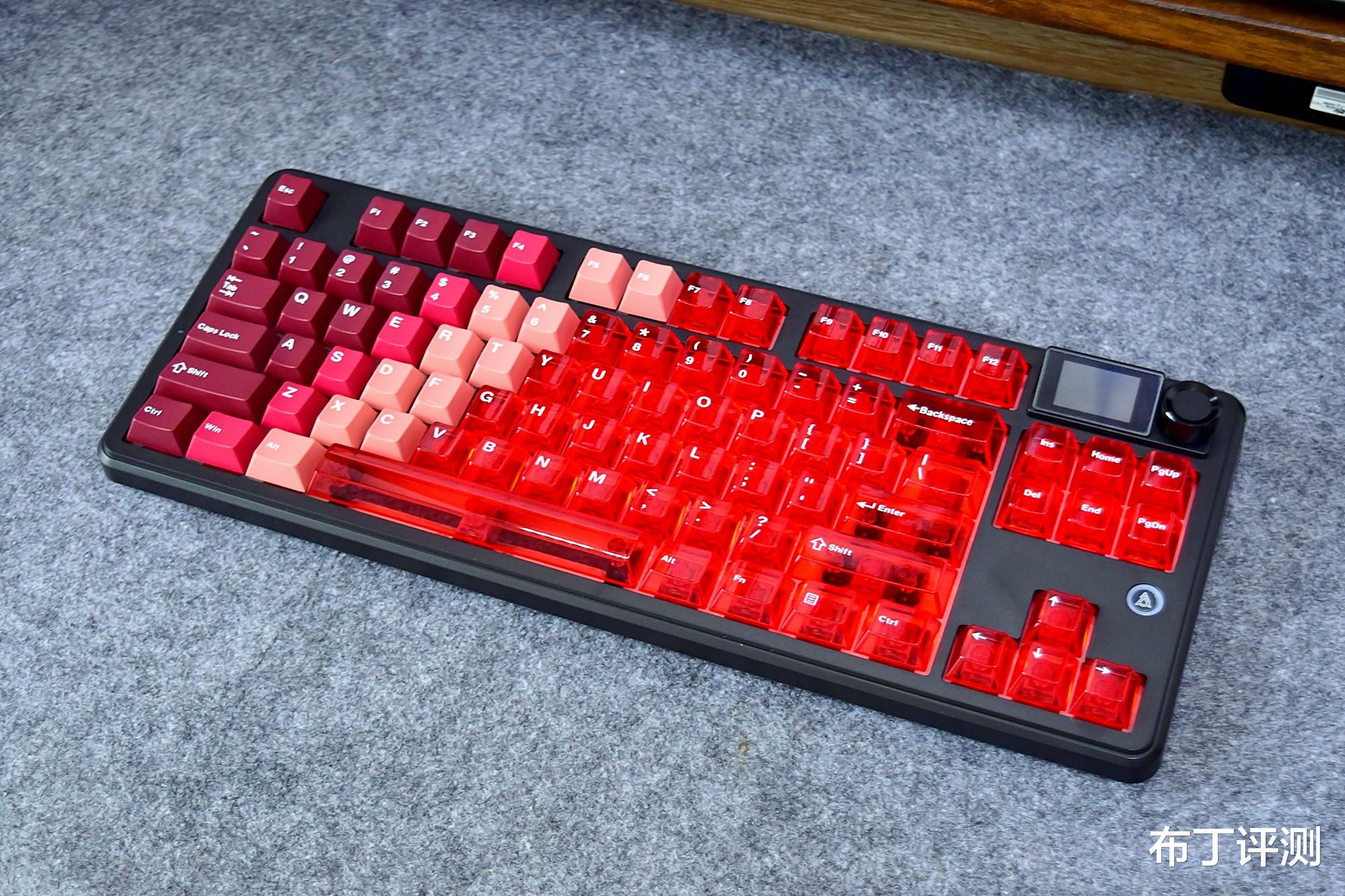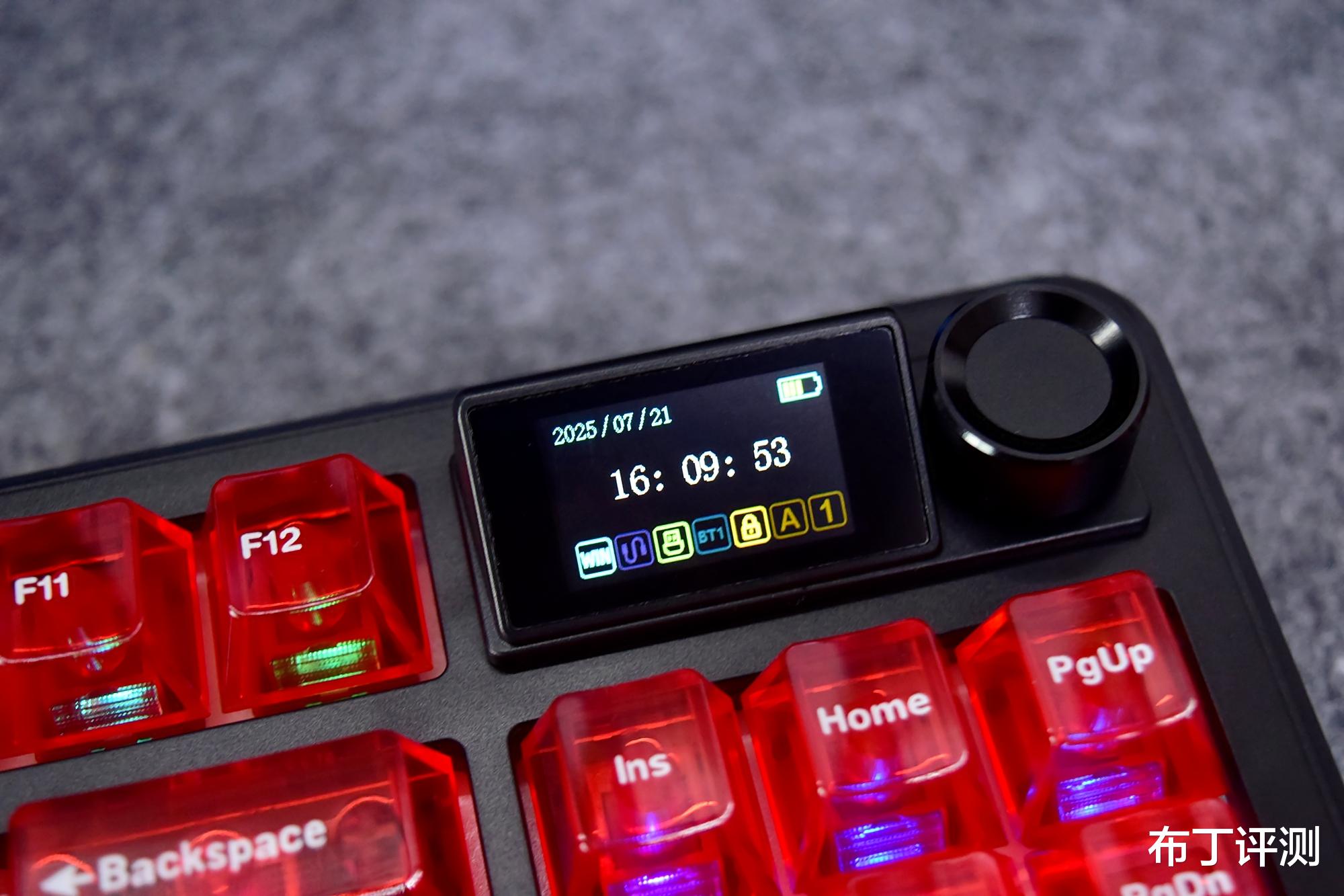 键盘的屏幕旋钮模块支持拆卸拔插,搭配附赠的3颗键轴和键帽,可以让它秒变87配列键盘,不过个人感觉还是屏幕模块更加实用。