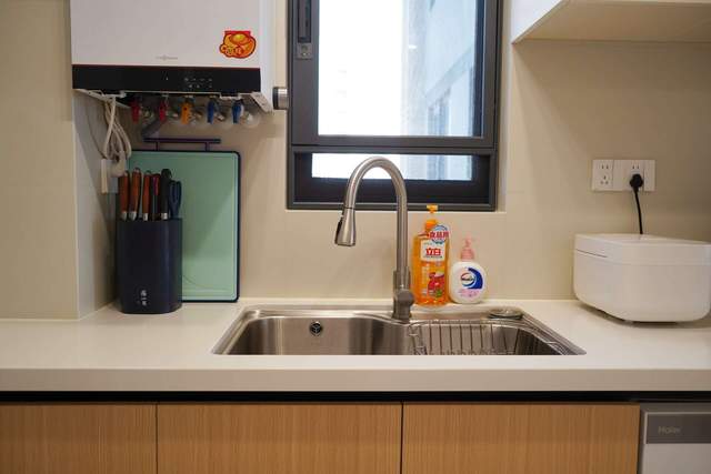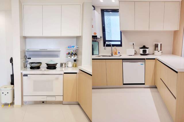 因为厨房完全暴露在外,你会被迫养成“台面尽量少放东西”和“随手清洁”的好习惯,这应该算是一种正向激励。