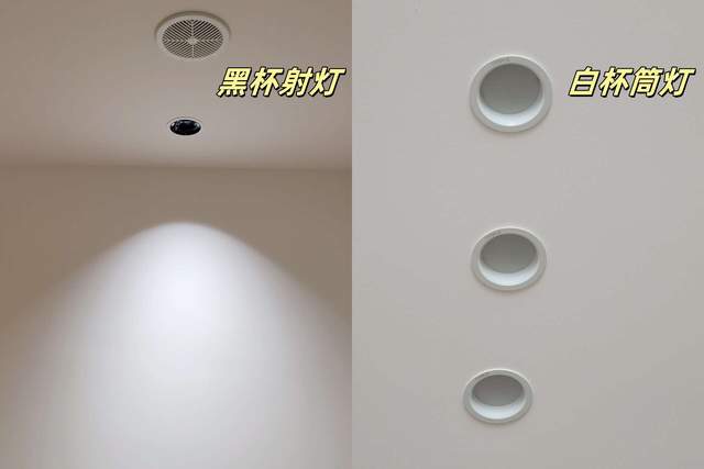 白杯是筒灯,黑杯是射灯,属于见光不见灯的那种,防炫的效果还是比较明显的,射灯的小山丘还有点氛围。总得来说,我家整个厨房的光照还是比较OK的。