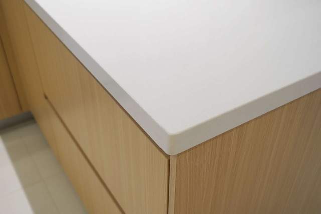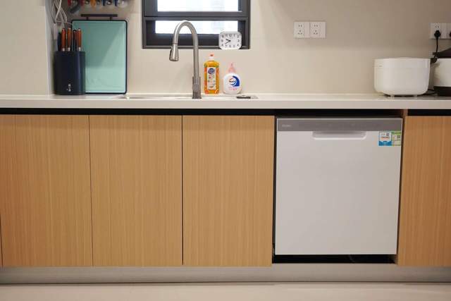 台面的话,基本就是每次吃完饭我会把碗筷放洗碗机里后,及时去收拾和清理台面,这里需要提醒的是厨房台面是很容易染色的,所以不要把容易染色的袋子或者食材直接放上面,如果万一还是不小心渗色了,可以用类似84强力清洁剂去擦除。