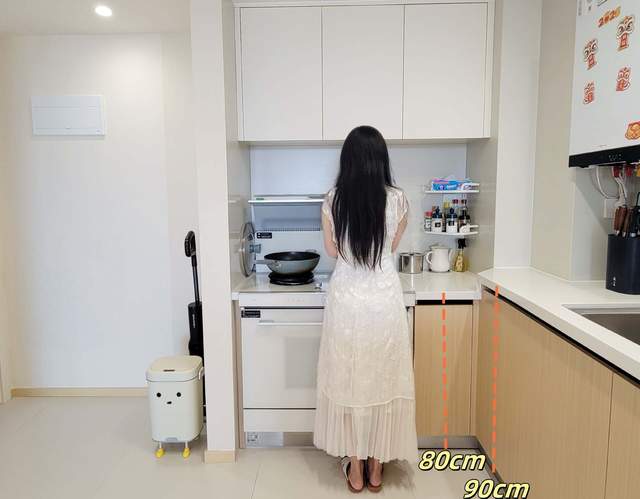 像我的身高是163cm,队友是175cm,最终我们定的是洗菜/备菜区90cm,搭配80cm烹饪区,我俩都不高,用着觉得还挺合适的。洗菜切菜不用弯腰,炒菜也不用架着胳膊。