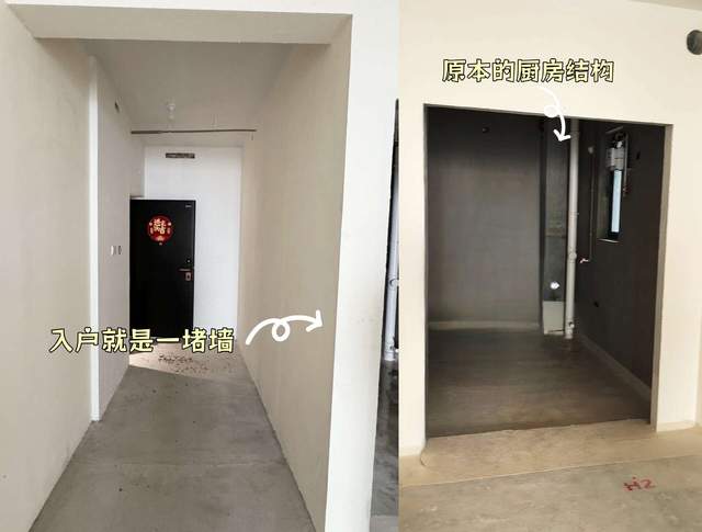 1、原户型的厨房采光差,而且面积小,入户就是一堵墙,整体感受很压抑