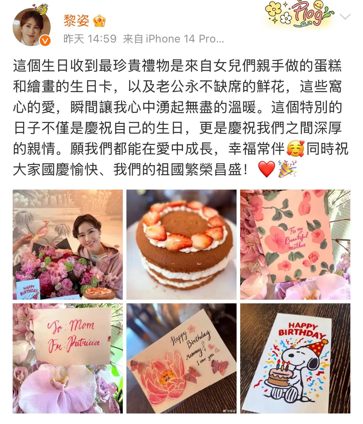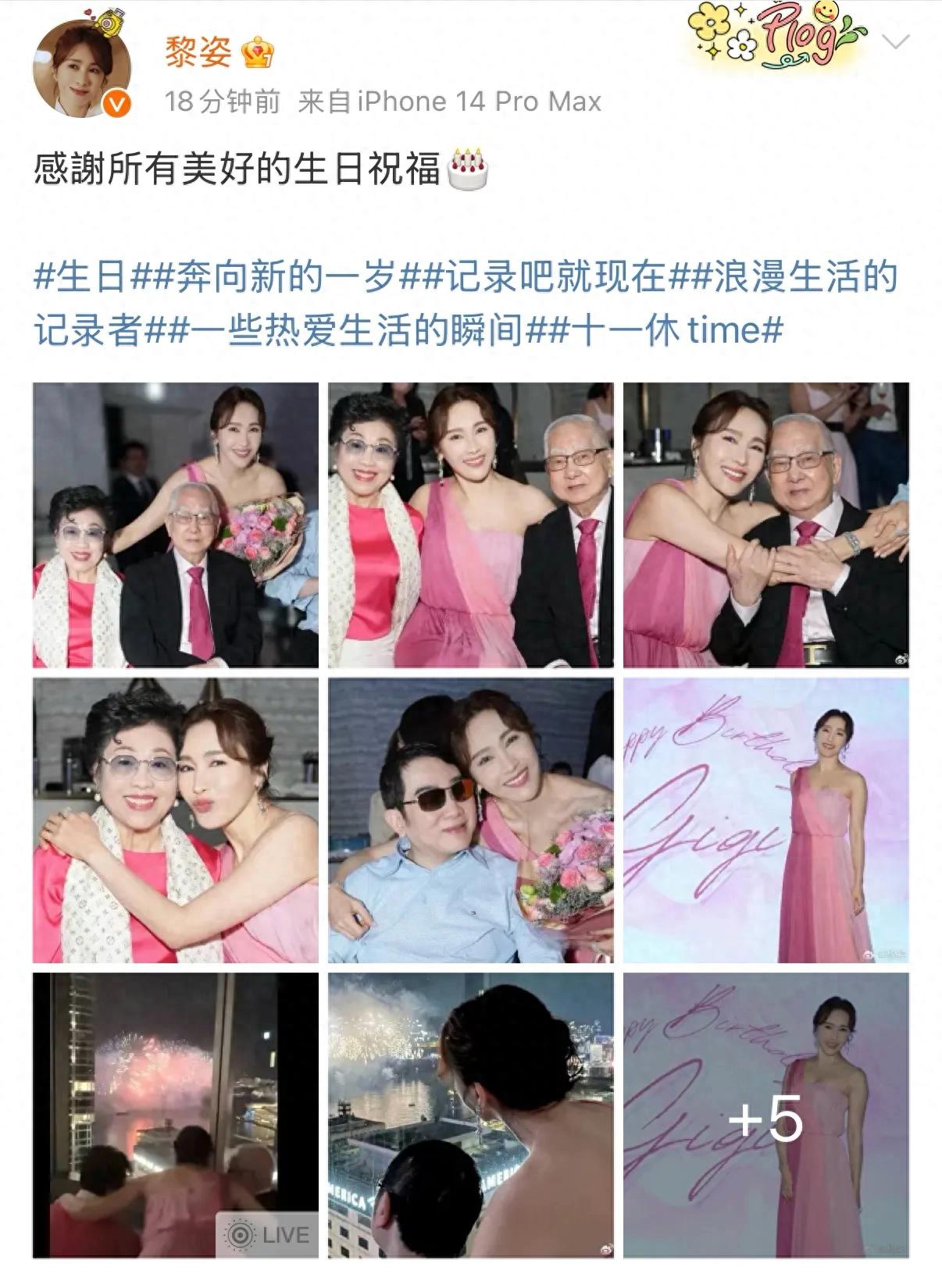 黎姿在社交平台晒出和家人一起庆祝54岁生日的照片,黎姿和父母以及弟弟同框,画面尽显温馨。