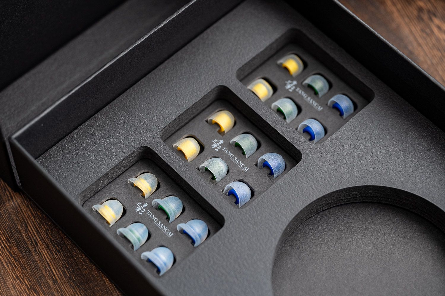 唐三彩系列的耳塞套我个人一直都非常喜欢,我对耳塞套的要求是属于舒适度>贴合度,那种表面摩擦力很强的套子对我的耳道刺激度是偏大的,但唐三彩系列表面的这种颗粒感恰到好处地平衡了这种关系,戴的牢、摩擦感不那么强烈,杜甫包装内置了不同的耳帽形状与口径的版本。