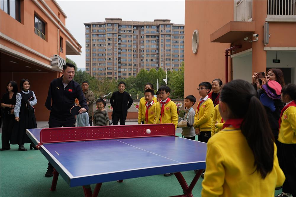 "张老师,怎样才能让自己的表达更自信?""廖哥哥,训练最辛苦的时候,你是怎么坚持下来的?"面对孩子们的好奇与困惑,两位嘉宾耐心细致地逐一解答,用真诚的分享给孩子们心田撒下一粒“榜样力量”的种子。随后廖克力还和孩子们进行了一场乒乓球“比赛”,榜样与孩子们的亲密接触,让榜样力量变得可感可触。