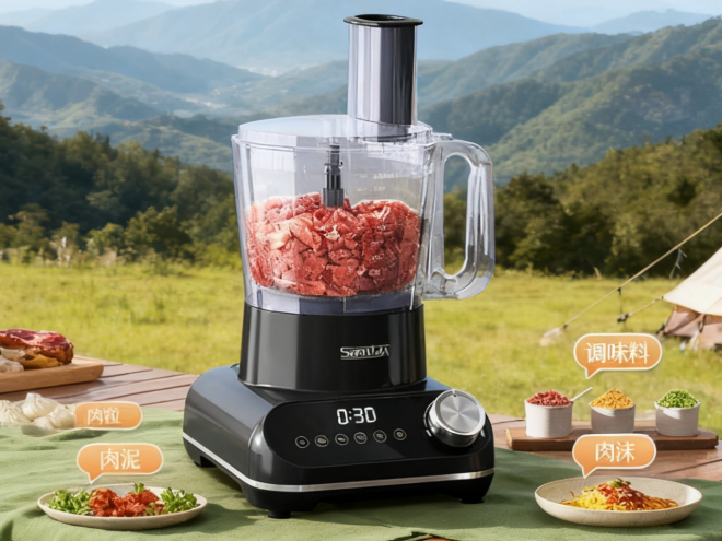 推荐理由:这款Sanlida搅拌机设计硬朗,黑色机身加厚杯体,容量大达2.5L。内置强劲电机,配有多档调速,能针对不同食材调整搅打力度。效率不错,但清洗时刀片锋利要注意安全。整体性能扎实,适合家庭或多宠使用,但频繁制作宠粮清洁难免费时。