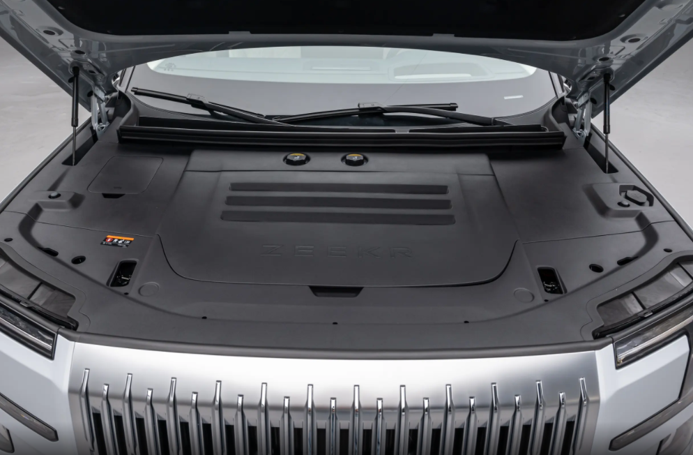 外观算得上是这台极氪9X比较出彩的设计了,在这方面,它很有故人的影子,方正的车头加上大尺寸的直瀑格栅,视觉效果上会有一种大气的感觉在其中,同时在大灯组方面,极氪9X的造型也是相当的独特,C字形的构造加上熏黑式的处理,在点亮后的辨识度上还是不差的。