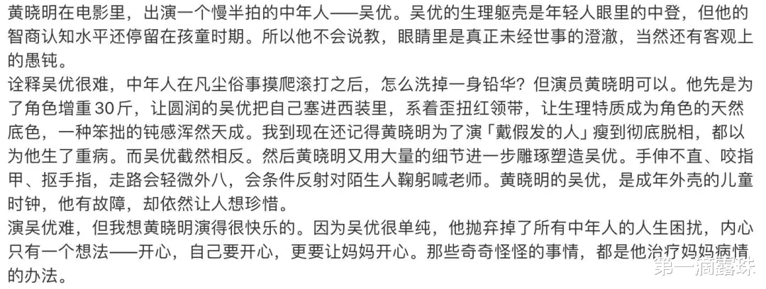 有人质疑这是“靠体型贴标签”的功利性表演,说他是为了冲奖刻意为之。但金爵奖击败葛优、黄渤摘得影帝,早已证明了黄晓明表演的含金量。