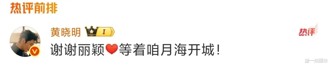 黄晓明回复说:谢谢丽颖,等着咱月海开城!