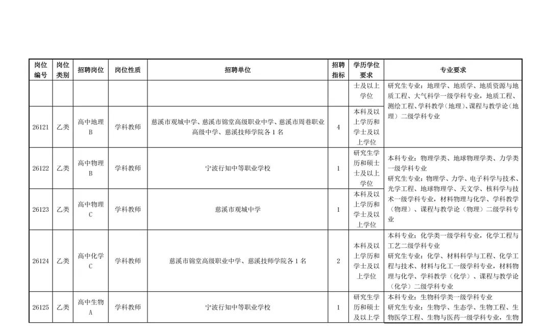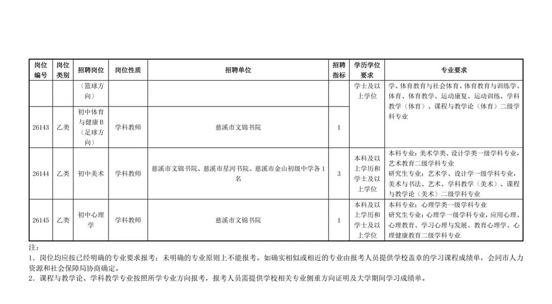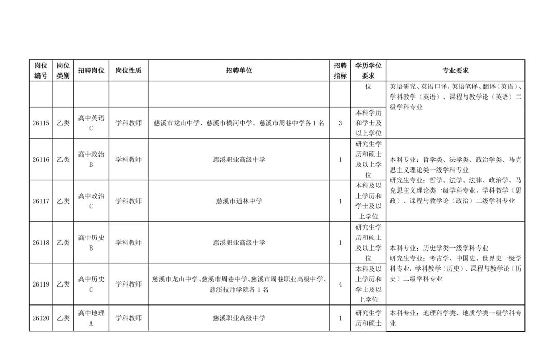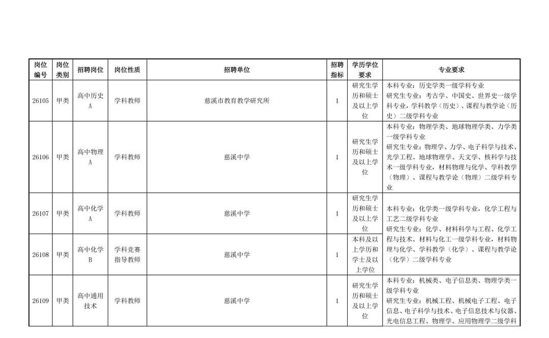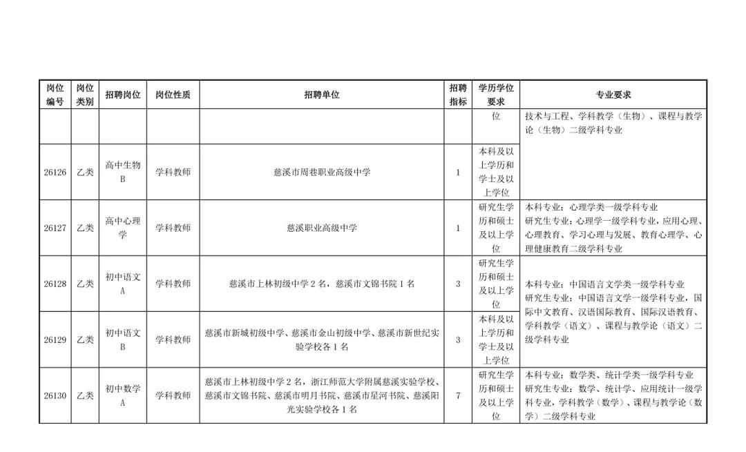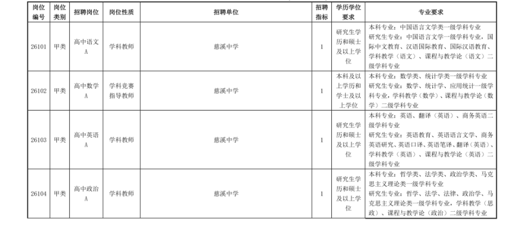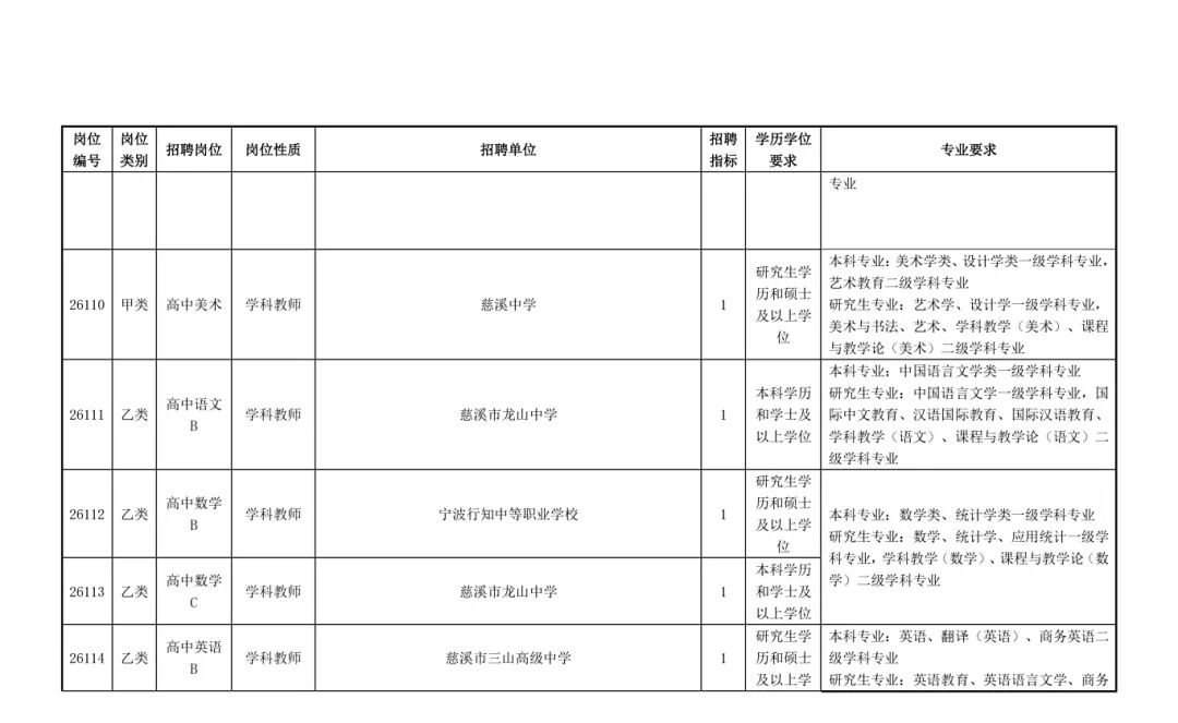 慈溪市教育局01招聘岗位及要求