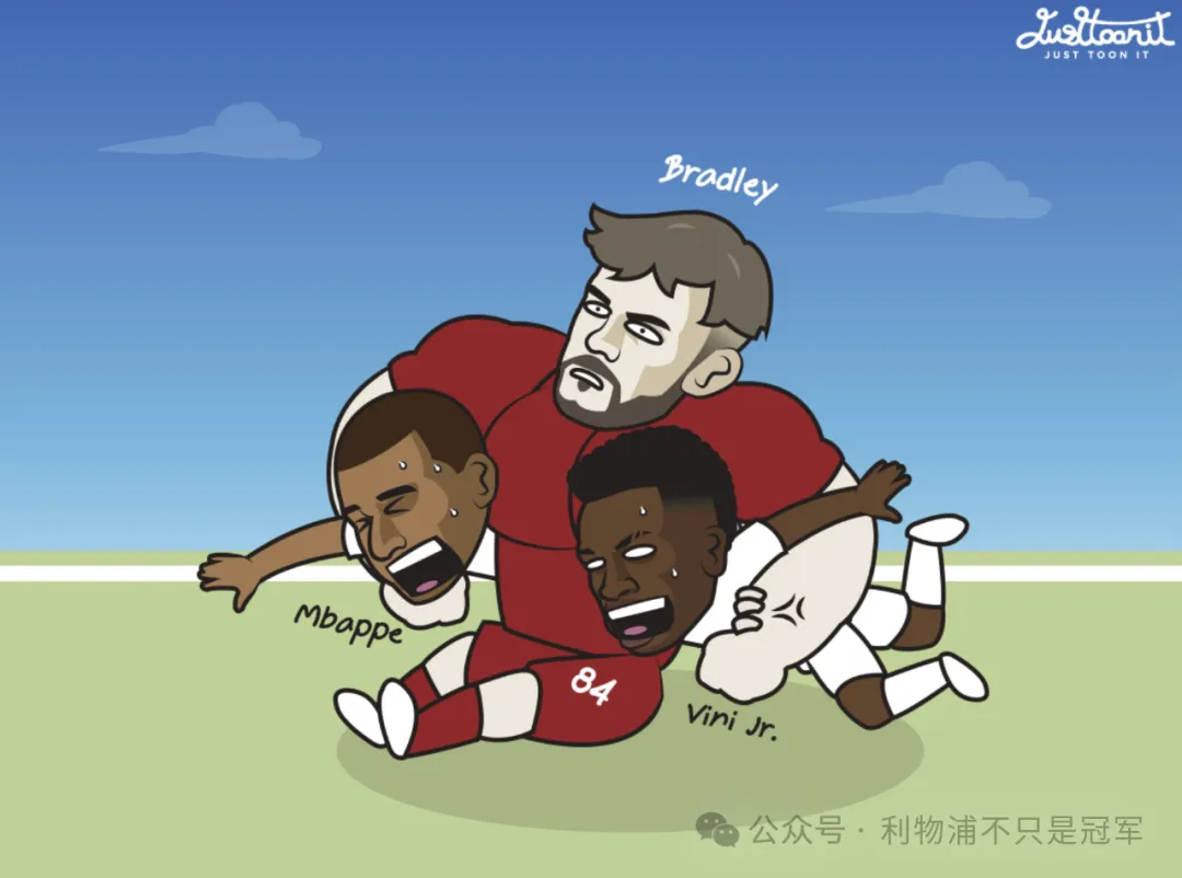 布拉德利在上赛季铲翻姆巴佩的一幕已经成为世界名画,今天他的表现更加成熟,堪称代表作。他的这一侧,是皇马的主攻方向,但无论是对维尼修斯还是对姆巴佩,他的防守都非常有强度,他的出色表现,是皇马今天进攻始终没有打开局面的重要原因。