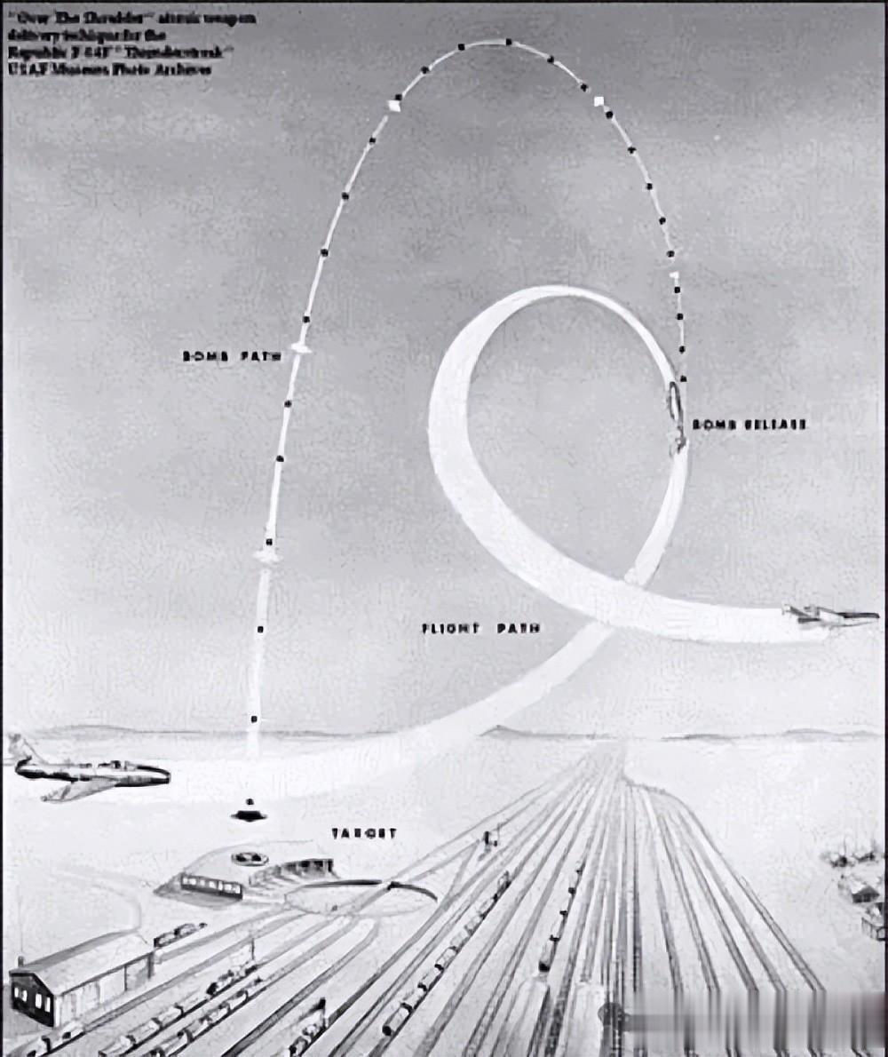 F-100C携带核弹采用越肩轰炸战术(Over-the-shoulder)示意图