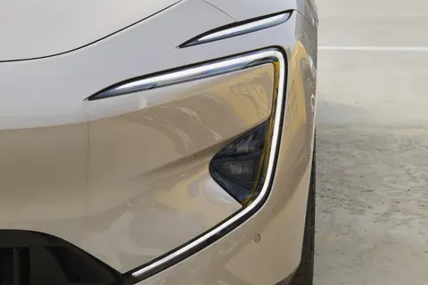 阿维塔12四激光版的外观和目前在售的车型基本没啥差别,设计上有个特别有意思的点,叫做藏锋于行。说白了就是平时看着低调克制,整体的气韵比较内敛,但该露锋芒的时候一点不含糊,气质瞬间就外放了,这种反差感还真挺吸引人的。这次新增的曦金灰配色让我有点眼前一亮。名字取得挺诗意,大概是想表达晨光照在大地上的感觉吧。这颜色在车身那种刚直的线条里悄悄融进了一丝柔和美感,不张扬但耐看。它依然保留了家族化的设计语言,四门掀背式造型很流畅,车头和车尾都显得饱满厚实。前脸那个C字形的LED灯组辨识度挺高,车标也做了扁平化处理,整体看起来干净利落。