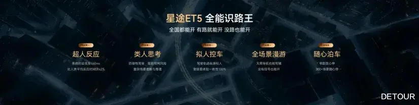 星途ET5以无与伦比的超智慧,打破了传统豪华的边界。它搭载猎鹰700辅助驾驶,全球首发地平线HSD及征程®6P芯片,以远超同级的560TOPS算力,构建起强大的数字底座,实现国内首个真正一段式端到端架构。星途ET5拥有了“超人反应”“类人思考”“拟人控车”“全景漫游”“随心泊车”五大核心优势,无论是在拥堵的城市高峰,未知的无图路段,星途ET5都能回馈毫秒级响应,优于行业40%;同级领先27颗传感器,3个足球场无死角覆盖,赋予驾驶者绝对的掌控感与安全感。星途始终坚持“能用是底线、敢用是标准、爱用才是享受”!
