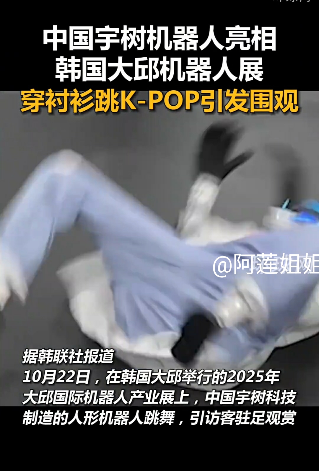 家人们!中国机器人在韩国直接“炸街”了!沈阳宇树科技的人形机器人一亮相大邱机器人展,立马把韩国观众的魂都勾走了——身着白衬衫笔挺得像上班族,跟着K-POP旋律扭胯、wave一气呵成,动作顺得能甩我三条街,围观人群挤得水泄不通,手机举得比演唱会荧光棒还密集!