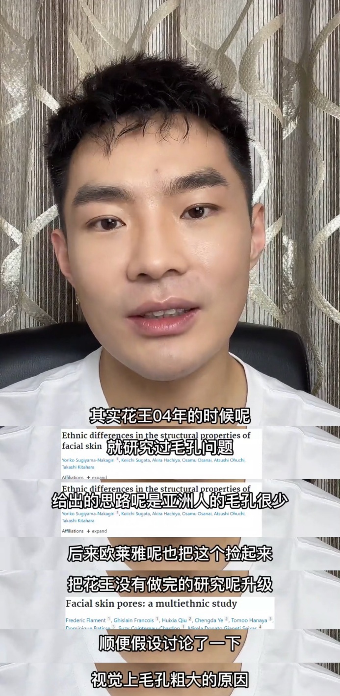其实花王04年的时候就研究过毛孔问题,给出的思路是亚洲人的毛孔很少,后来欧莱雅也把这个捡起来,把花王没有做完的研究升级,顺便假设讨论了一下视觉上毛孔粗大的原因。