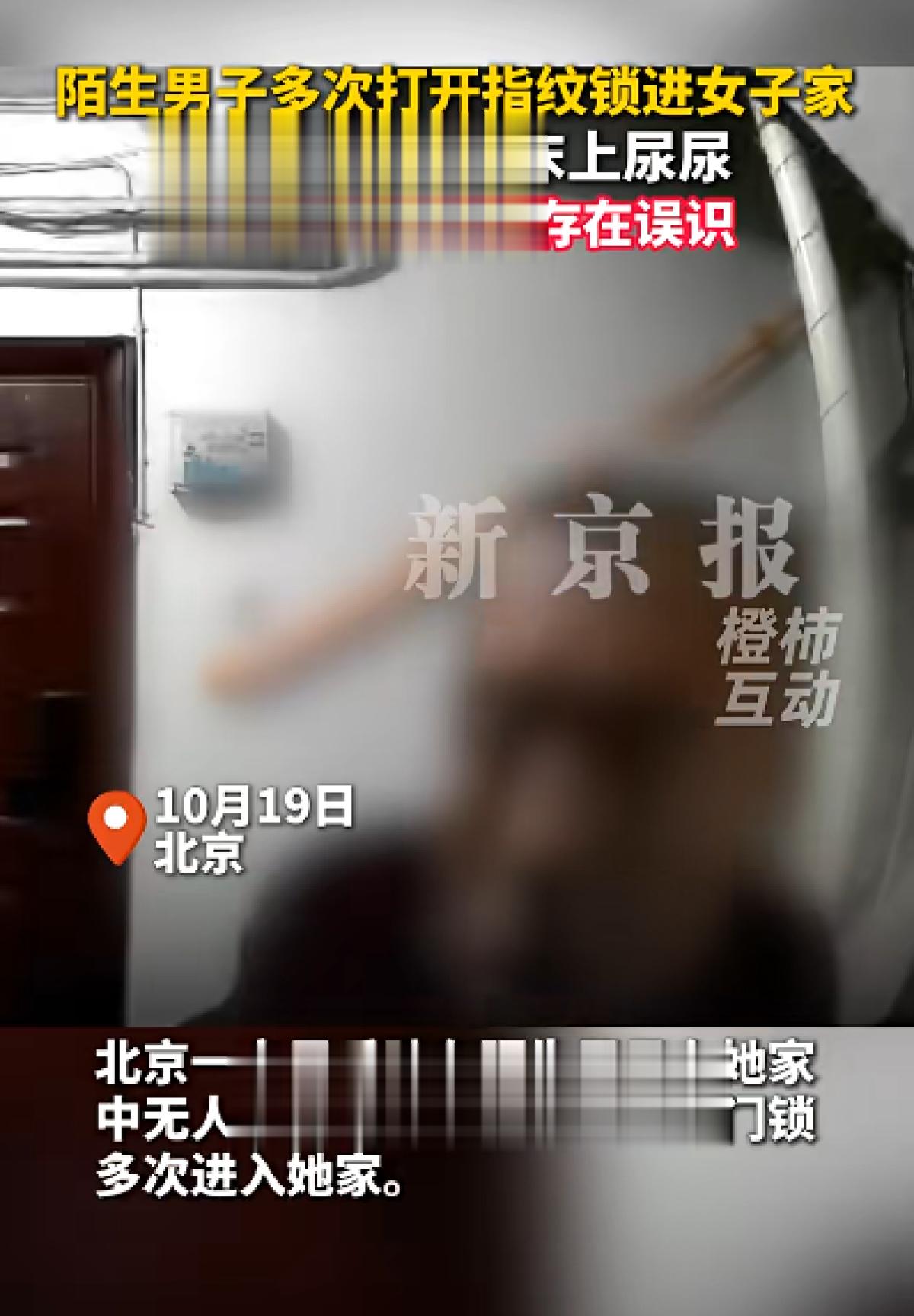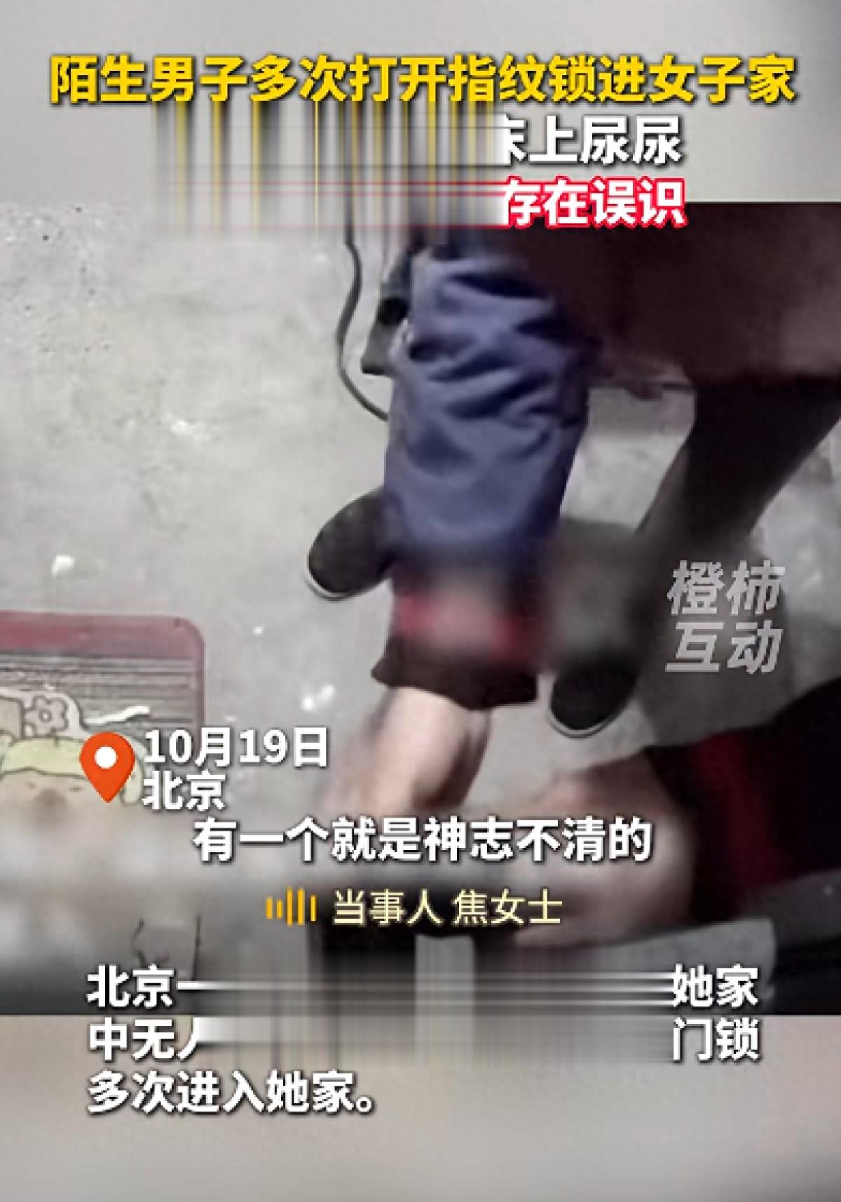 当事人焦女士告诉记者,10月19日上午,她通过监控发现一男子多次通过指纹打开门锁进入她家。男子直接来屋里睡觉,不盗窃但他都是进行一些损坏,(家里)全是尿。