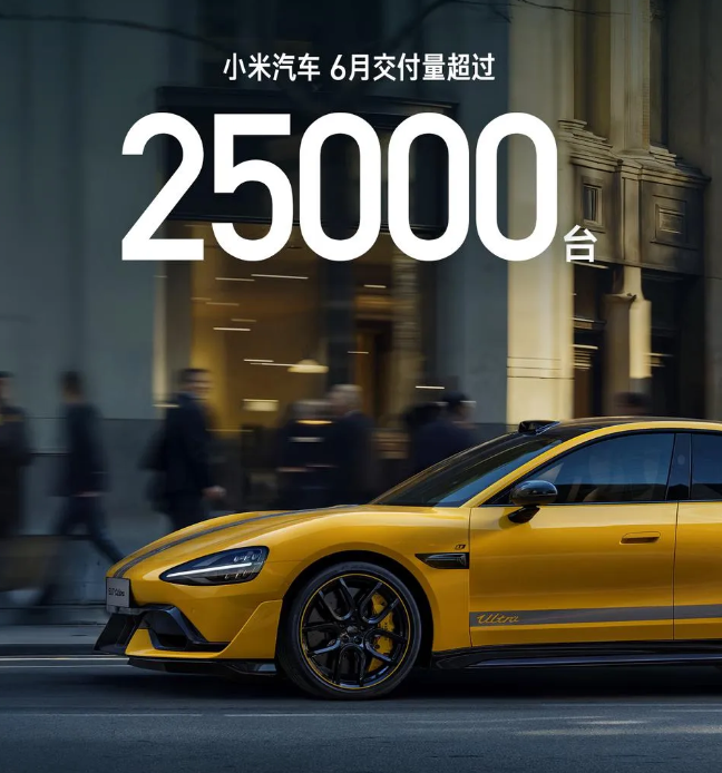 与此同时,小米汽车还公布了其2025年6月的交付数据。据官方消息,2025年6月,小米汽车交付量超过25000台。但并未公布小米YU7具体交付数量多少。